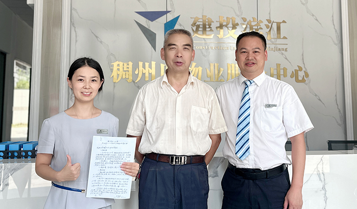 义乌稠州府小区是位于核心地段的回迁房,余老先生追求生活品质,为自己家的装修投入了大量精力,他希望公共区域也应完美匹配,这样的小区居住才会有舒适感。虽然他还未入住,但是一年来,他在装修期间已感受到滨江物业服务像家一般的温暖。他还表示,物业晓之以理、动之以情、干之以行、规之以纪的好作风值得学习借鉴。