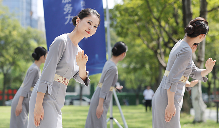 在开幕式上,滨江物业秩序队员大显身手,表演警棍盾牌操和擒敌拳,这离不开他们平时勤学苦练,练就了一身真功夫。客服表演的案场秀礼仪操,展现礼仪之邦的文明之风。