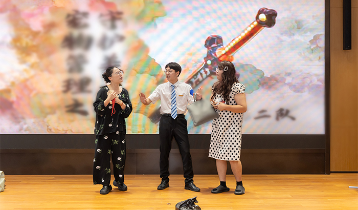 前期案场服务的物业人员,他们不仅要展示出优雅的礼仪风采,还要比拼国韵主题的高定茶歇,在规定时间内、他们现场制作饮品、果盘、点心三个品种。国风当潮,美食为先,案场物业人员创意泉涌、团队协作,精致呈现出代表滨江物业品牌的高定茶歇款,征服评委。