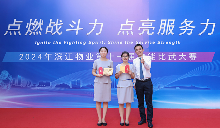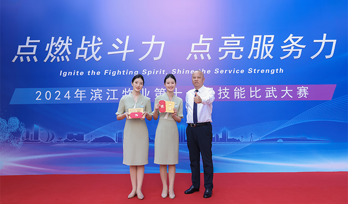 金秋时节,硕果累累。9月28日,“点燃战斗力,点亮服务力”2024年滨江物业第十一届技能比武大赛在杭州举行。滨江物业董事长兼总裁余忠祥、执行总裁沈国荣等领导出席本次大赛。